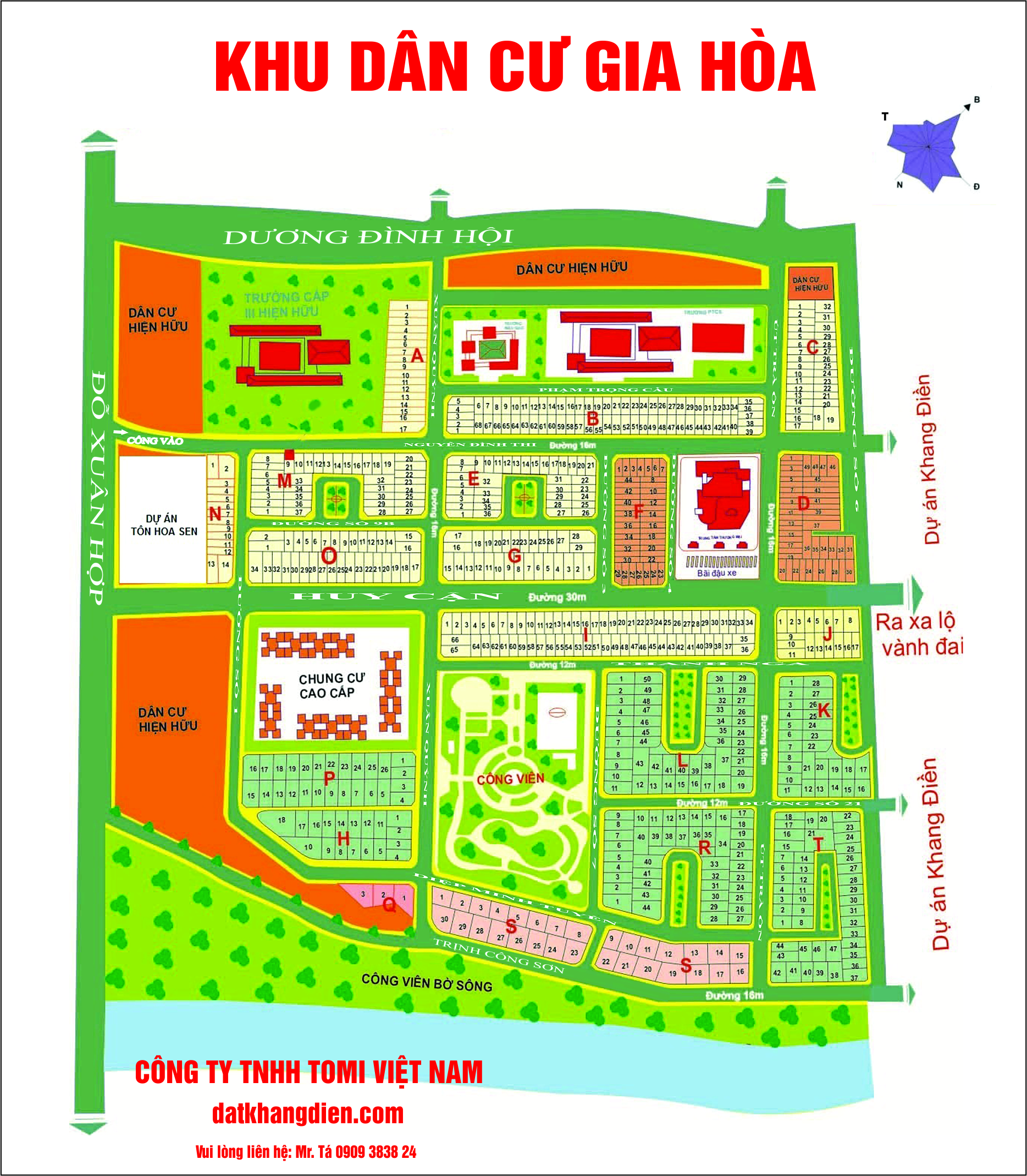 Pháp lý: Sổ hồng đứng tên chủ đầu tư công ty Gia Hoà, người mua được giữ bản chính, xây xong nhà ra sổ hồng 100%.
